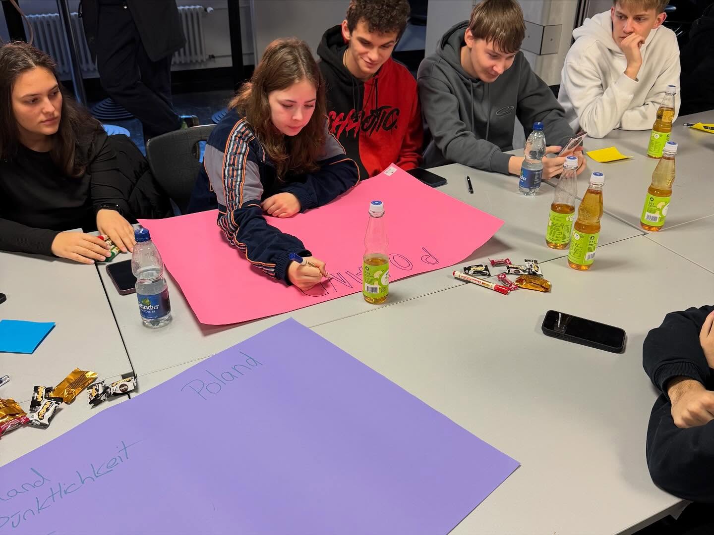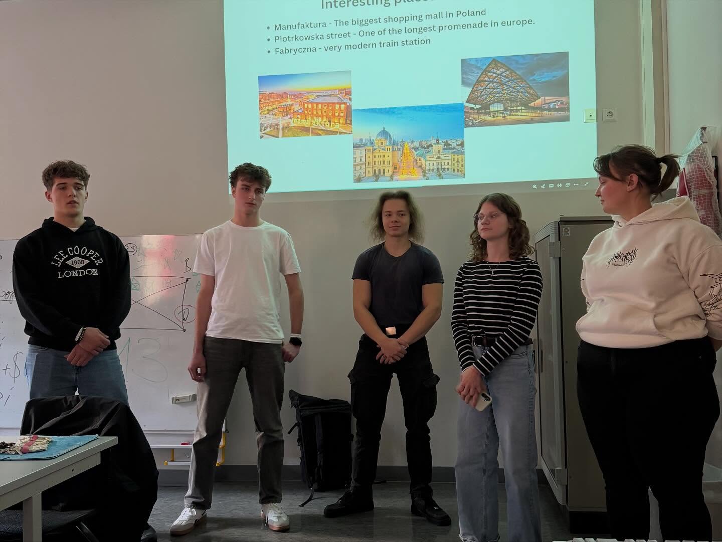 Podczas spotkań w szkole uczniowie wymieniali się wcześniej przygotowanymi informacjami na temat: historii przemysłowych miast Łodzi i Stuttgartu, systemów edukacyjnych w Polsce i Niemczech oraz miejsca naszych szkół w tych strukturach, sposobów spędzania wolnego czasu w obu miastach, działań na rzecz ochrony środowiska i zrównoważonego rozwoju a także problemów migracji i demografii. Zwieńczeniem pracy projektowej były uroczyste prezentacje przygotowane w polsko-niemieckich grupach.
